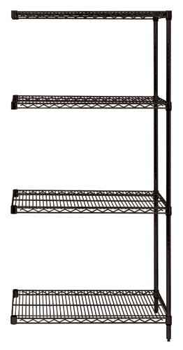 BLACK - WIRE SHELVING Available Heights: 63", 74", 86" high units Color: Black Design: Dry, warehouse conditions Each unit includes the follow: |