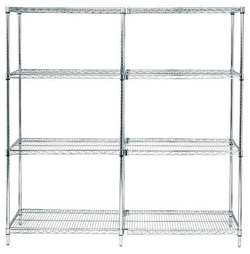 WIRE SHELVING Available Heights: 63", 74", 86" high units Color: Shiny, Bright Silver Design: Dry, warehouse conditions Each unit includes the follow: |