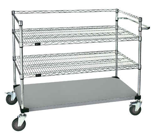Stainless Steel Wire Shelves, bottom shelf, handle, with casters and donut